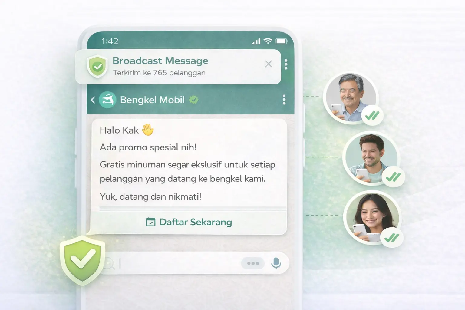 Berbeda dengan WhatsApp API biasa yang membuat Anda kehilangan akses personal, WhatsApp Anda tetap bisa digunakan seperti biasa di HP Anda.