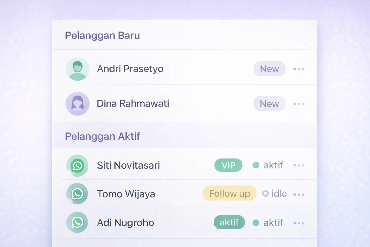 Pantau aktivitas pelanggan, percakapan, dan perkembangan bisnis dari satu dashboard.
